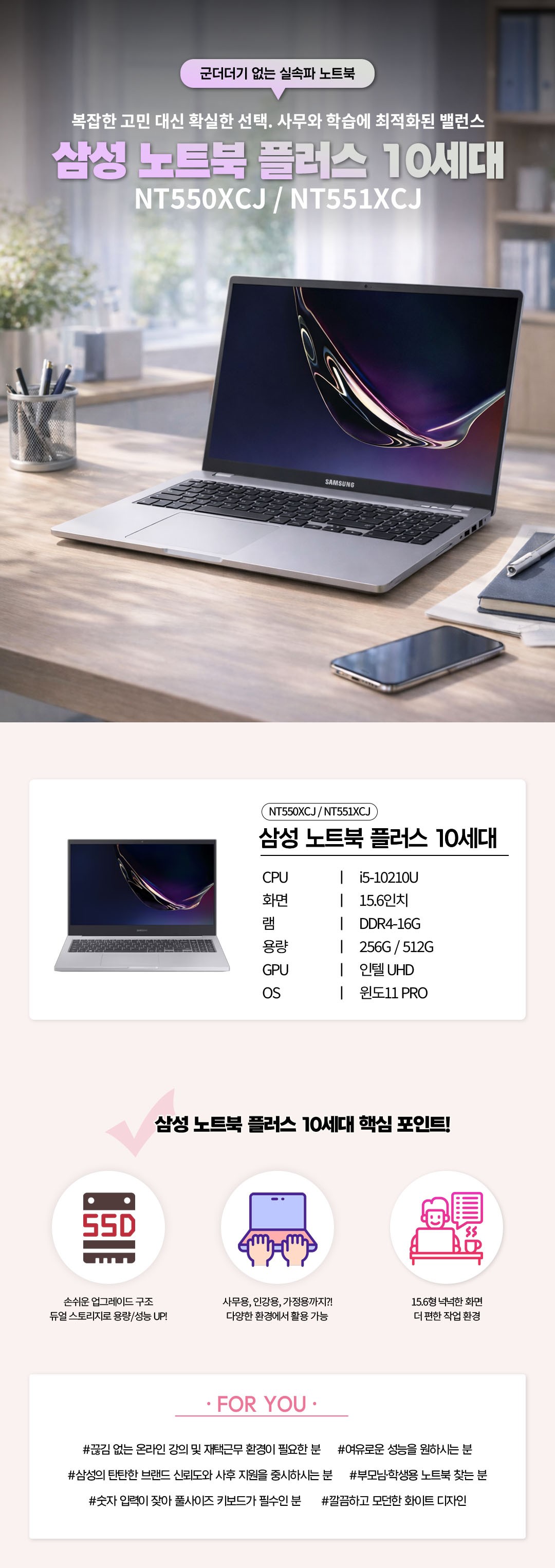 NT550XCJ,NT551XCJ(인텔 코어i5-10210U @ 1.60GHz/DDR4-16G/SSD 256G/인텔 UHD Graphics/윈도11PRO/실버/가성비리퍼)