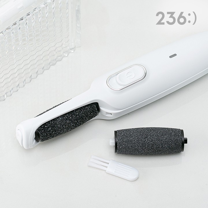 구성 : 본체, 롤러, 충전케이블, 청소용 브러쉬 / 극미세 각질제거 / 분당 2,400회 강한 회전력 / 2단계 속도조절 / 물세척 가능 롤러 / 간편한 USB충전(완충 시 최대60분 사용)