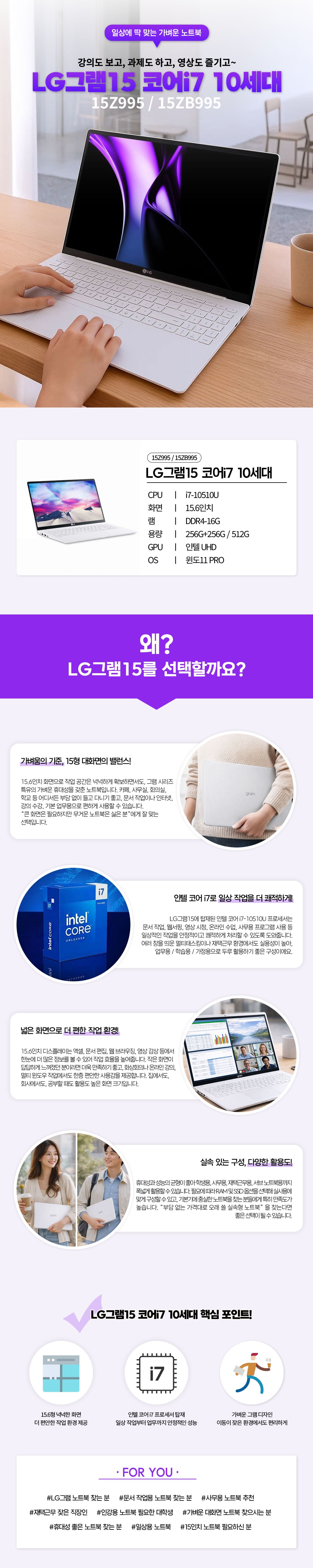 15Z995,15ZB995(인텔 코어i7-10510U @ 1.80GHz/DDR4-16G/SSD 256G/인텔 UHD Graphics/윈도11PRO/화이트/1.09kg/풀박스패키지/가성비리퍼)
