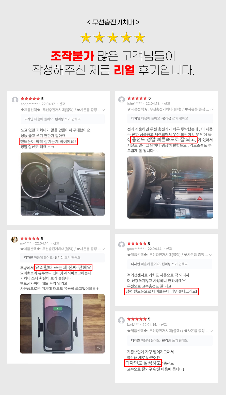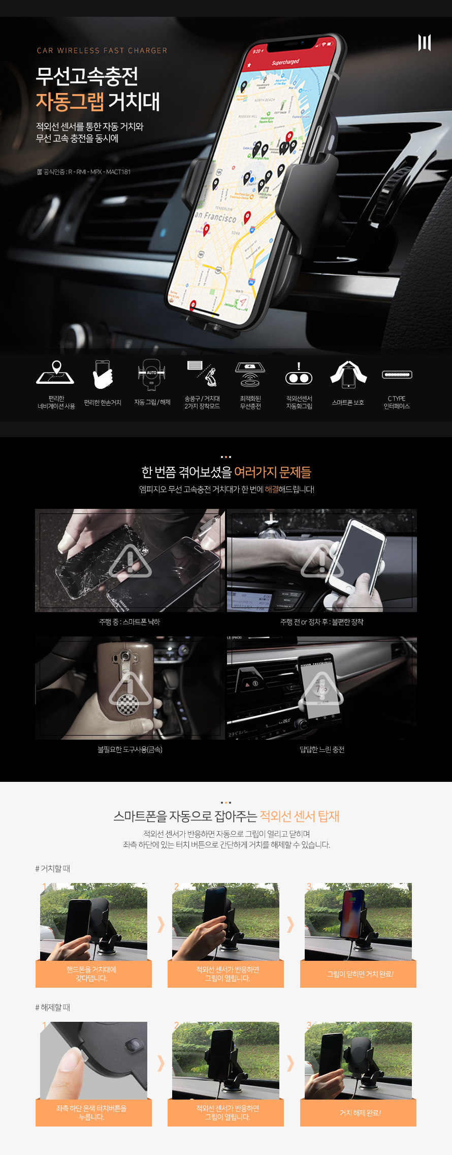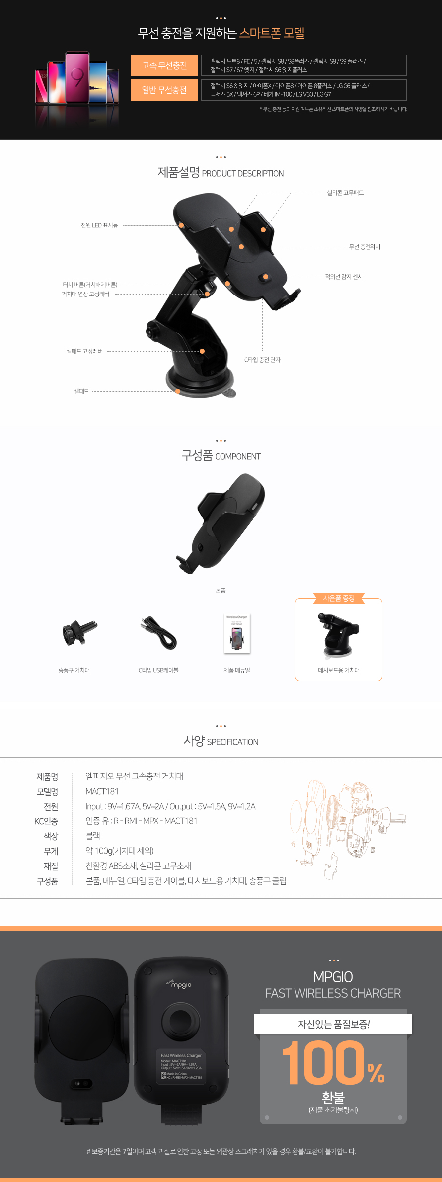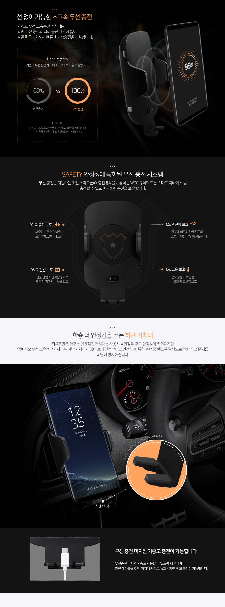 엠피지오 무선충전거치대/고속충전/오토그랩 자동거치/한손거치/차량용핸드폰거치대