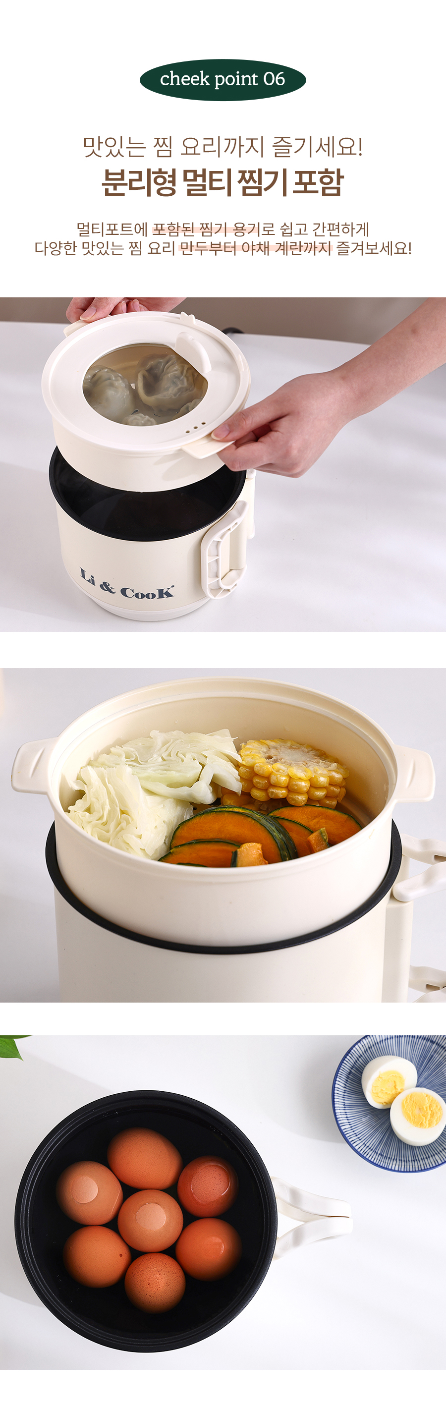 트래블 멀티쿠커/분리형 코드/넌스틱 코팅/찜판 구성/