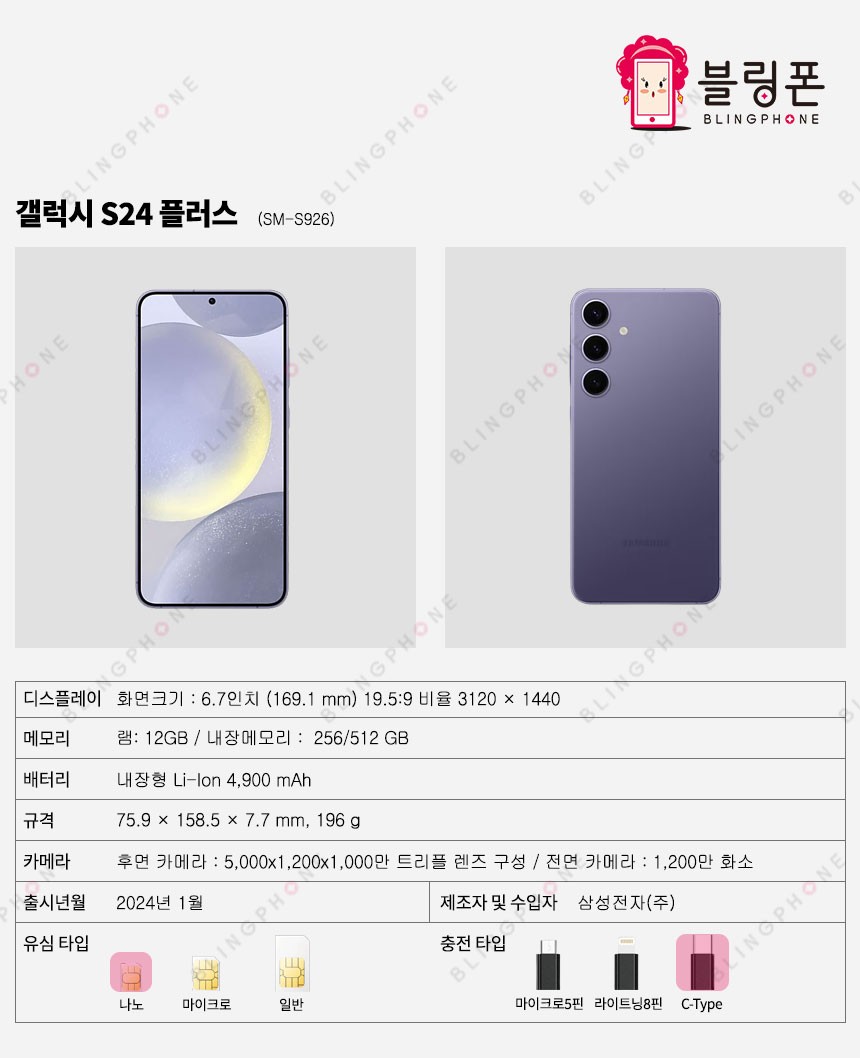 SM-S926 삼성 갤럭시 S24플러스 256G 공기계 자급제 리퍼폰