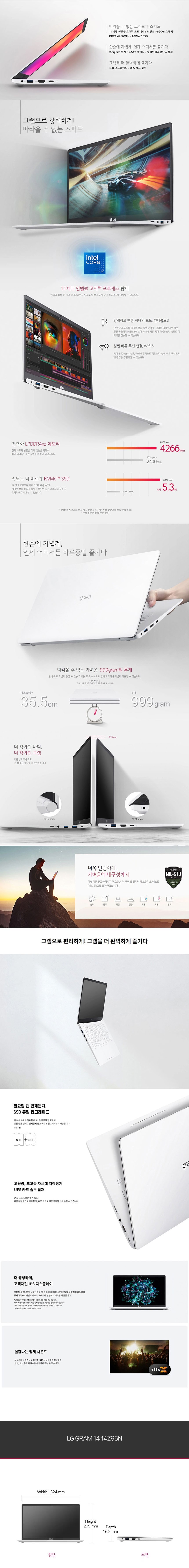 14Z95N/14ZB95N(인텔 코어i7-1165G7 @ 2.80GHz/DDR4-16G/SSD 256G/인텔 Iris Xe/윈도11PRO/화이트/14인치/0.99kg/A급리퍼)