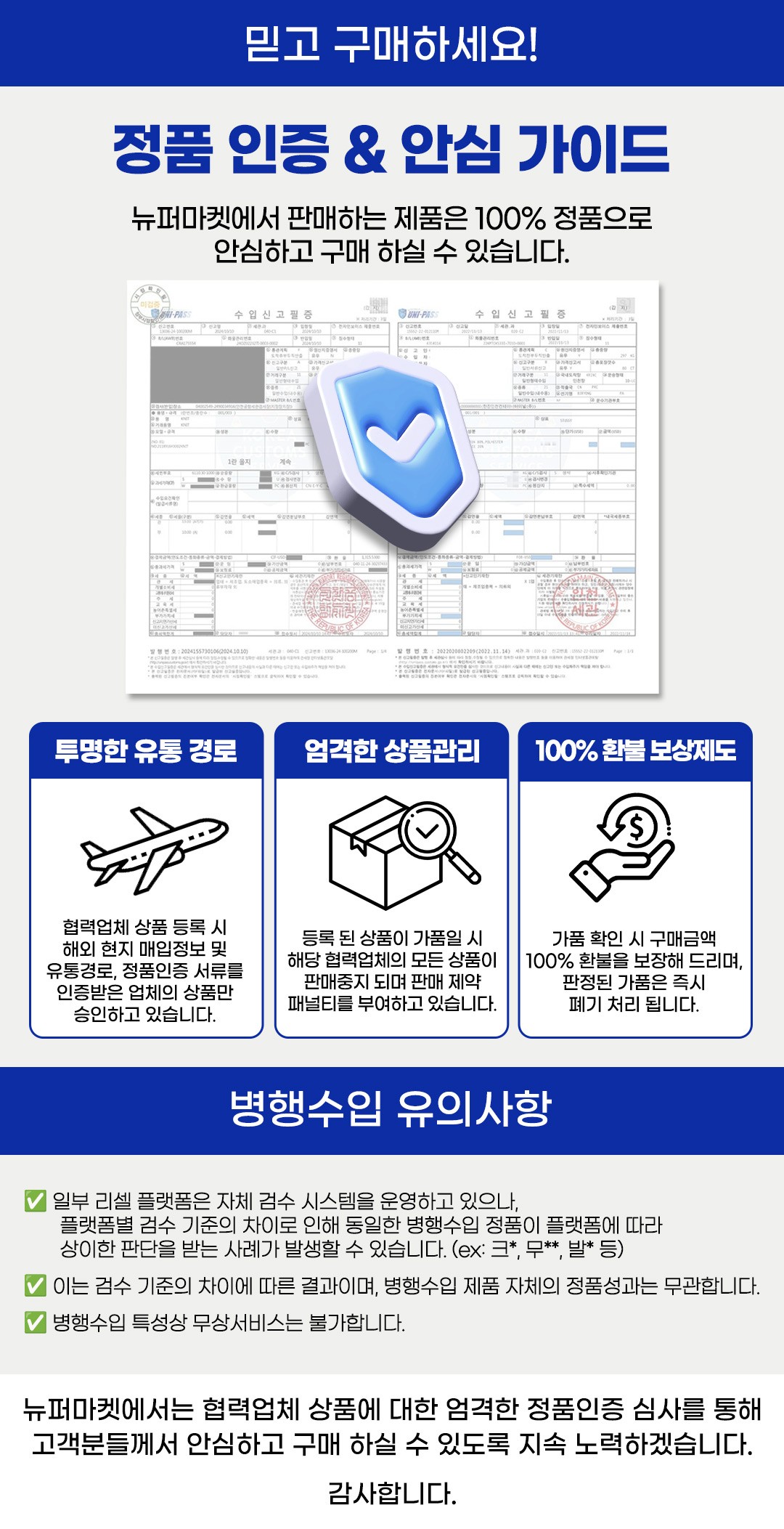 뉴퍼마켓 배송 상품 - 입금 완료 후 1일~2일 이내 배송(출발)됨을 기준으로 하나 주문량이 많은 경우 최대 3일까지 소요될 수 있습니다.