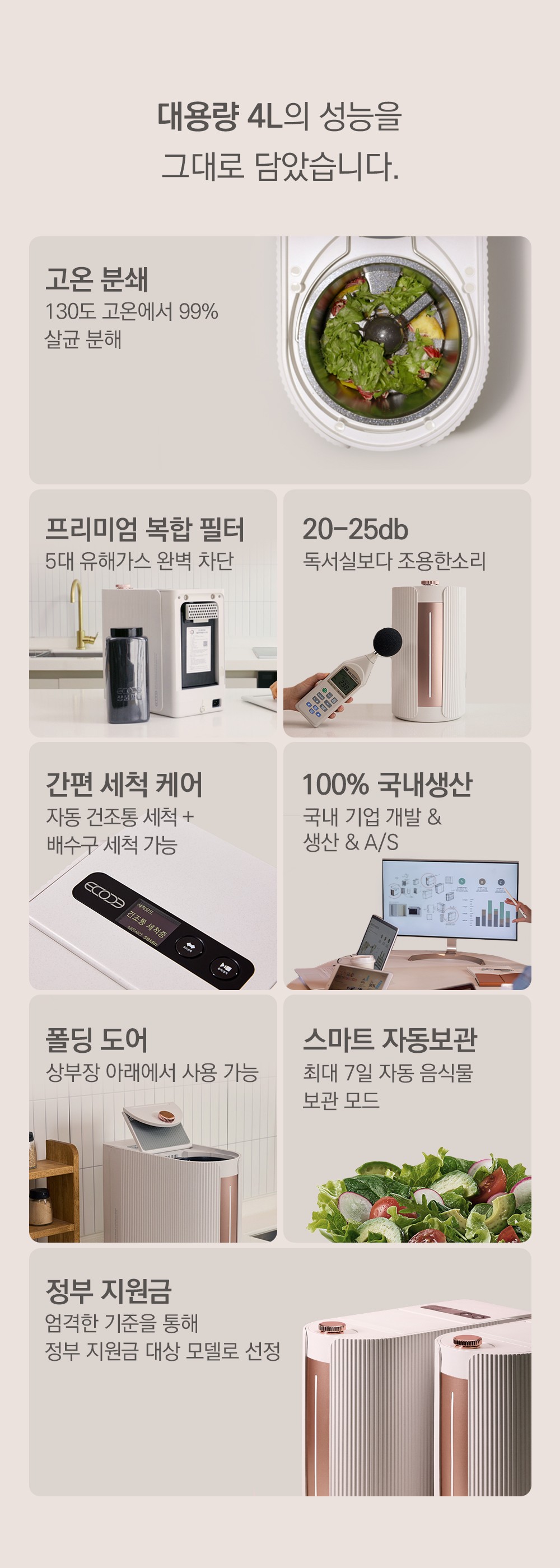 S급 리퍼 제품을 직매입하여 저렴한 가격으로 준비했어요!! 130도 고온에서 99% 살균 분해하여 깔끔하고 냄새걱정없이 주방을 유지할수있어요 저소음으로 조용하게 작동하고 간편 세척케어로 음식물 쓰레기 스트레스에서 벗어나세요!