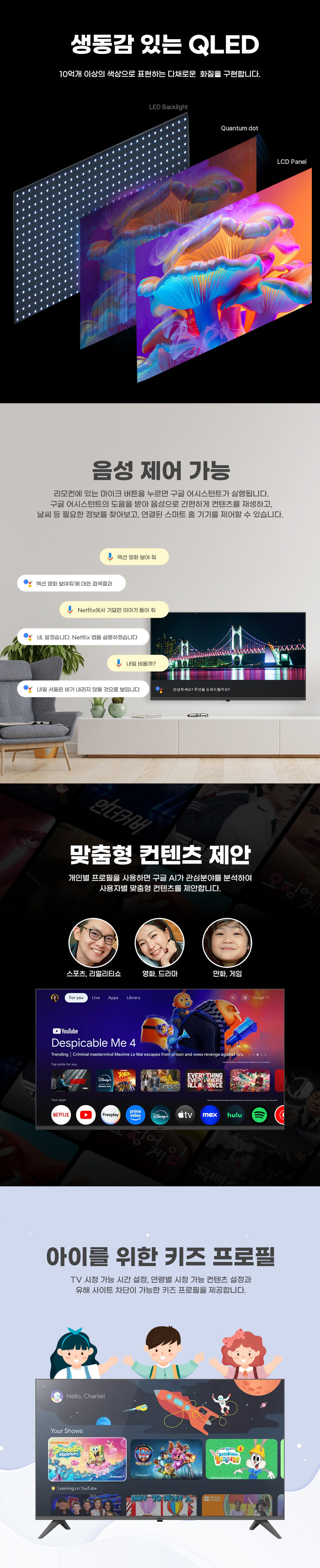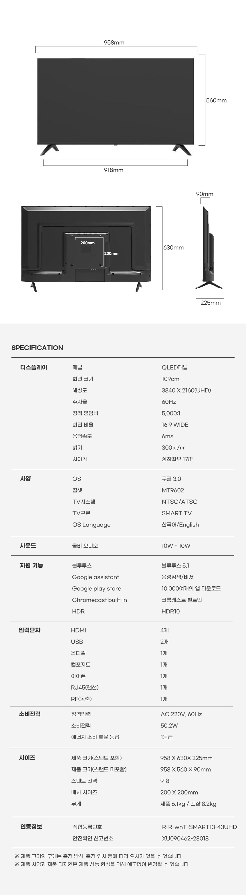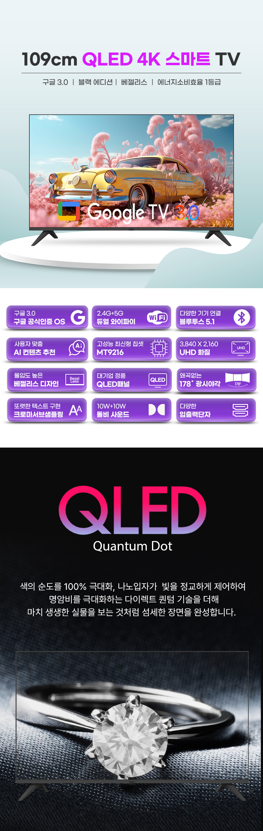 43인치 QLED 4K 구글 AI 스마트TV 베젤리스 1등급
